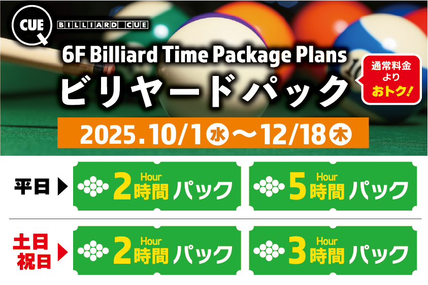 ・パック料金や撞き放題プランでご予約することはできません。