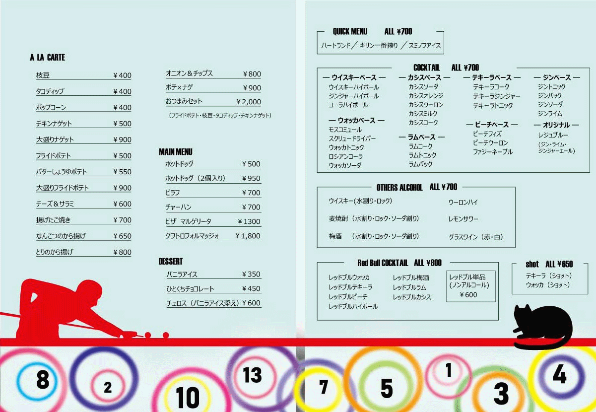 真剣に球を撞かれる方はもちろん、お酒を飲みながら楽しまれる方やカップルの方もくつろげるお店です。